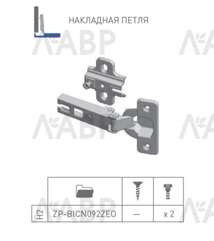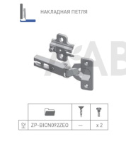 петля GTV накладная, h=2мм,slide-on, с еврошурупом(250шт)/ZP-BICN092ZE