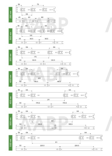 направляющие шар. 100% выдвиж 250мм/35мм К (20) аналог 09113
