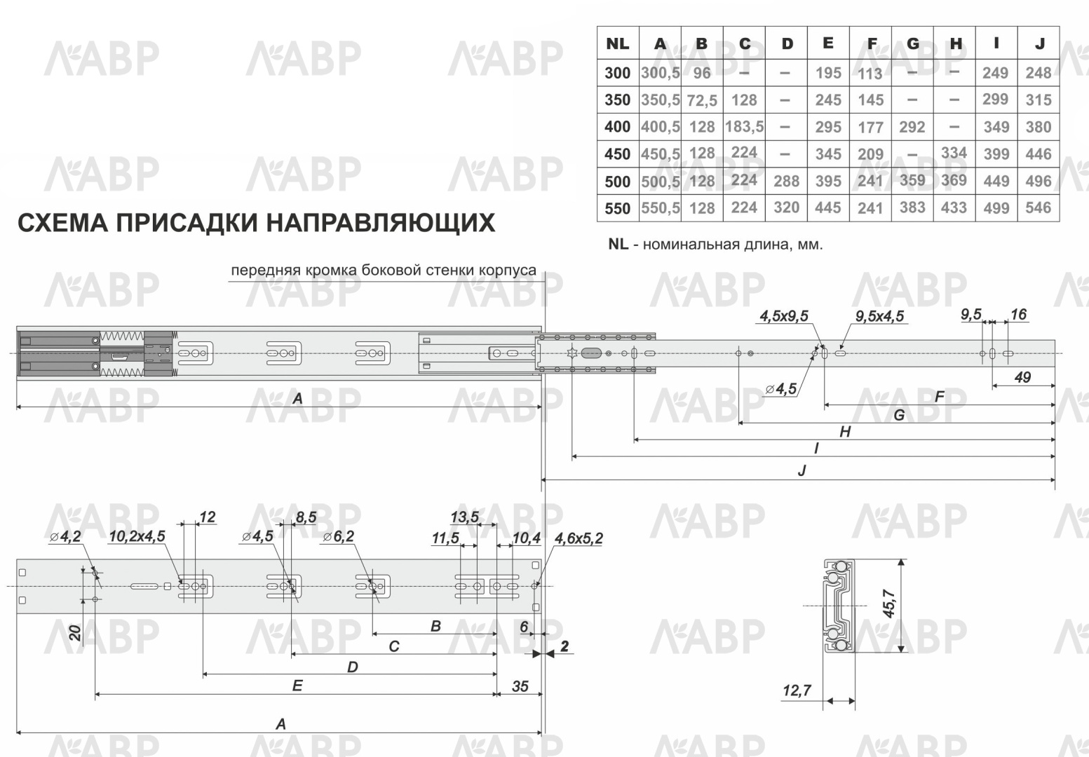 Направляющие шариковые полного выдвижения Satellite с доводчиком 450мм DB4505Zn/450 Boyard