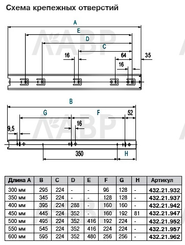 Направляющие шариковые полного выдвижения 45*550мм 432.21.957 Hafele