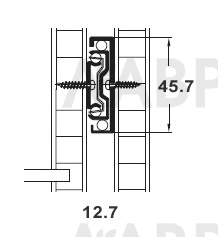 Монтажный размер между боковой стойкой корпуса и боковиной выдвижного ящика: 12,7 мм.
