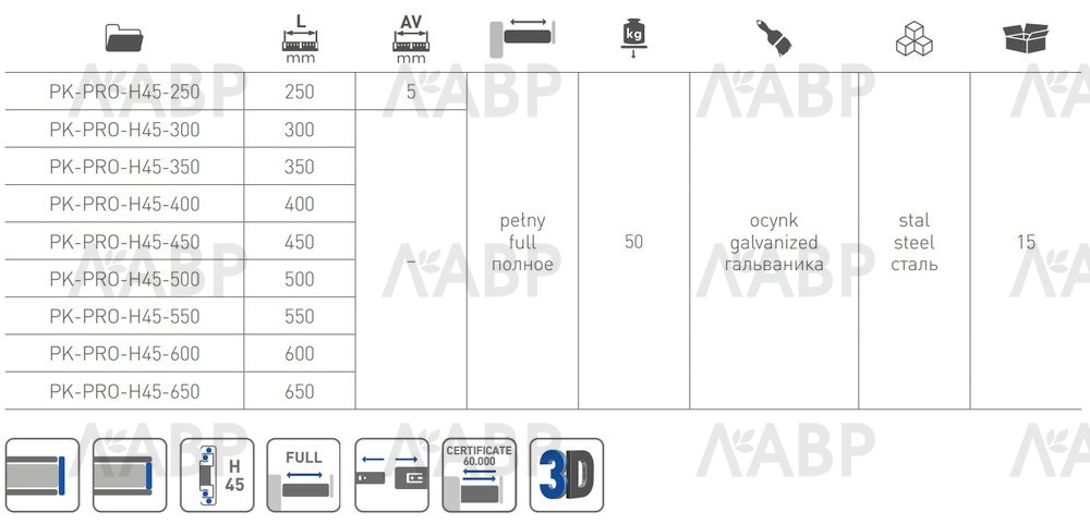 Направляющие шариковые полного выдвижения 45*500мм PRO на 50кг PK-PRO-H45-500 GTV