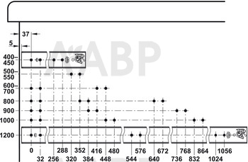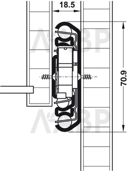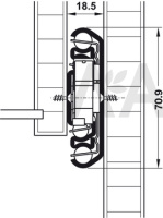 Монтажный размер между боковой стойкой корпуса и боковиной выдвижного ящика: 18,5 мм.