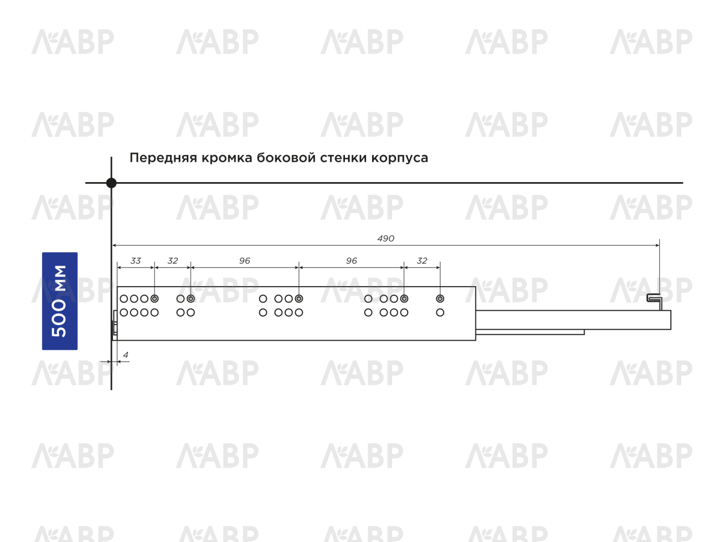 Направляющие скрытого монтажа с доводчиком полного выдвижения 500мм Laurs PRO