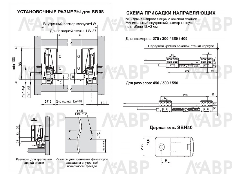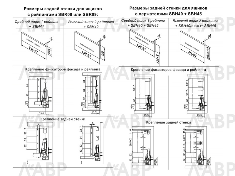 SBR09 – прямоугольный рейлинг, предназначенный для формирования выдвижных мебельных ящиков. Применяется с держателями рейлинга SBH40 и держателями задней стенки SBH61, SBH62, SBH63 (в зависимости от выбранной высоты боковин) для формирования выдвижного мебельного ящика любой желаемой высоты с прямыми боковинами в графитовом цвете.