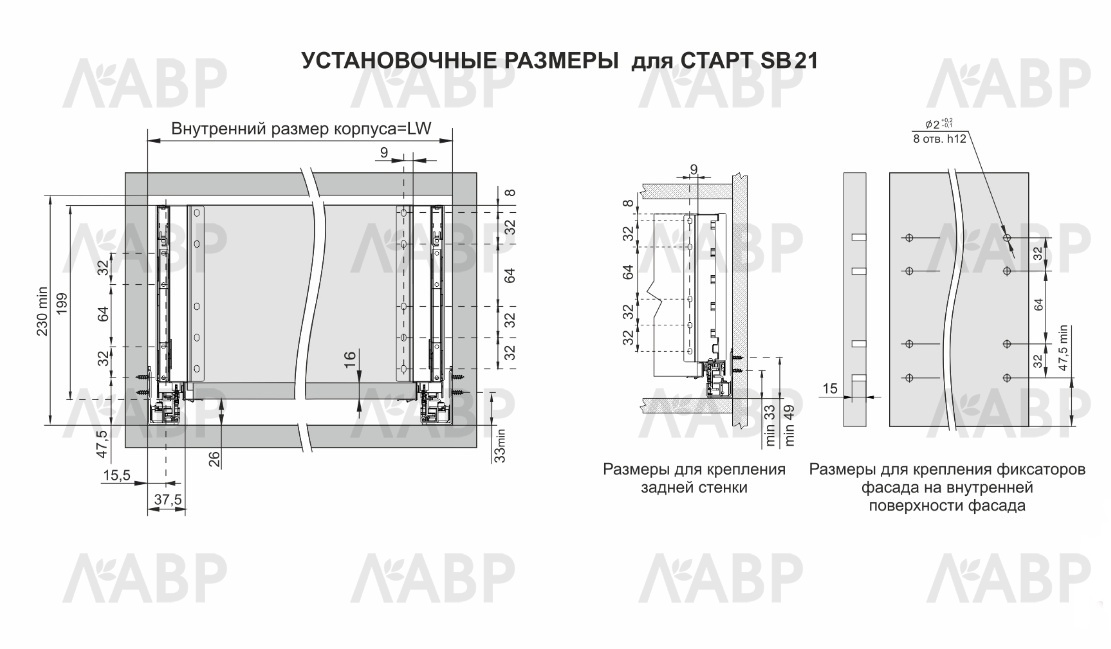 СТАРТ SOFT ЭКСТРА SB21 — комплект систем выдвижения для сборки высоких, габаритных и вместительных выдвижных ящиков с плавным доведением и стильными прямыми боковинами высотой 199 мм для минимальной высоты проёма 230 мм. Комплект включает в себя направляющие, 2 боковины, держатели фасада и задней стенки, заглушки с логотипом BOYARD и необходимый крепёж.