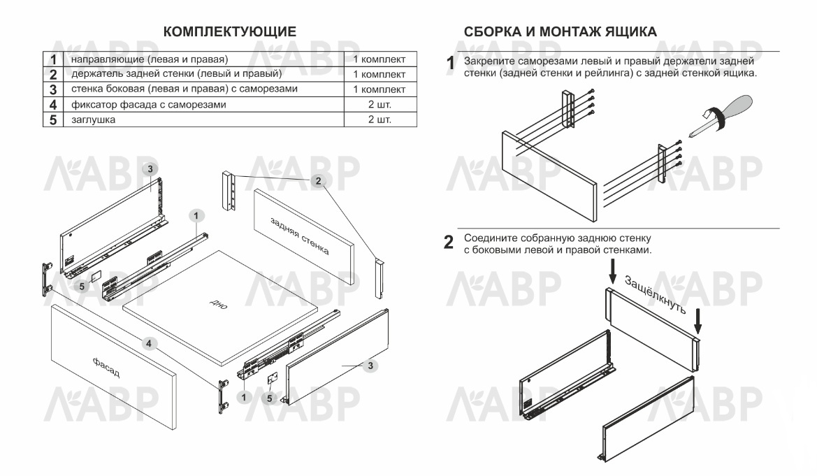 Для сборки выдвижного мебельного ящика на базе СТАРТ SOFT ЭКСТРА SB21 необходимо самостоятельно изготовить фасад, заднюю стенку и дно ящика.