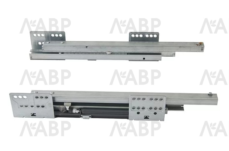 - обратный демпфер, компенсирующий звук удара подвижной части, направляющей о неподвижную в случае резкого полного открывания ящика.