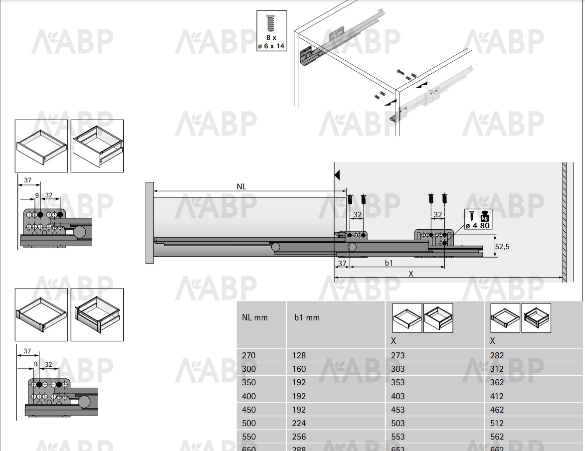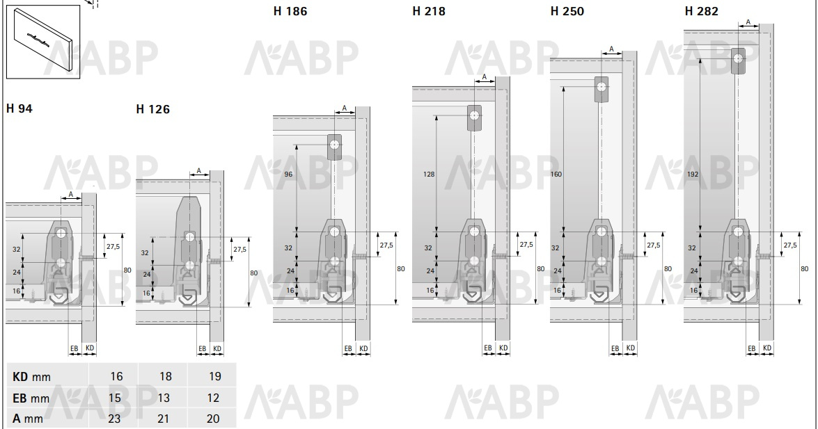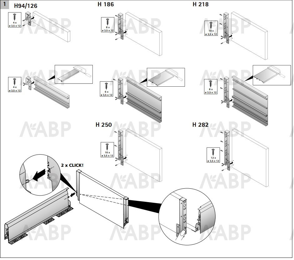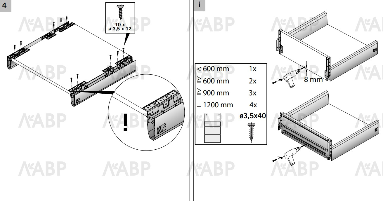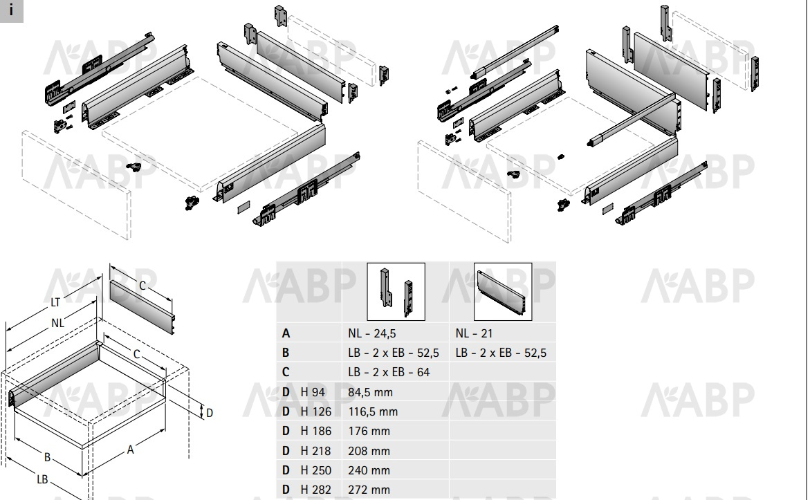 Набор фурнитуры без направляющих HETTICH, для ящика ArciTech