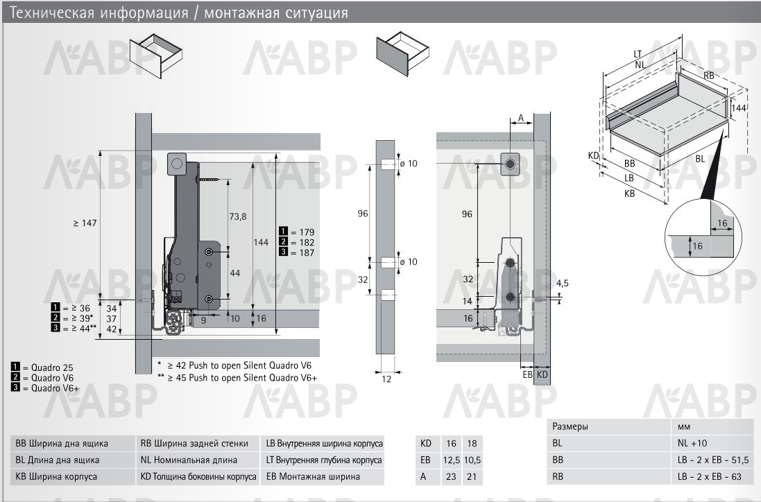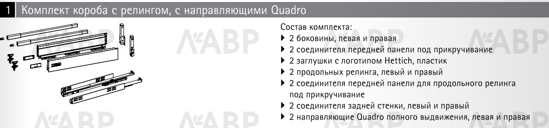 • 2 направляющие Quadro полного выдвижения с демпфером Silent System, левая и правая