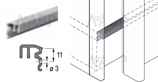 Стабилизатор задней стенки ящика HETTICH AvanTech You применяется для защиты днища от провисания, для деревянных и алюминиевых задних стенок.