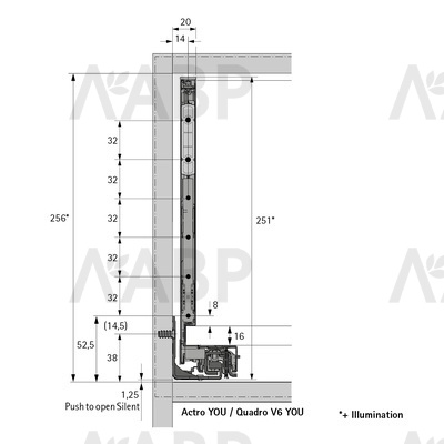 Хеттих/AvanTech You ящик 100% выдвижения 251*500мм, серебристый, БЕЗ направл, без соединителей /9353375