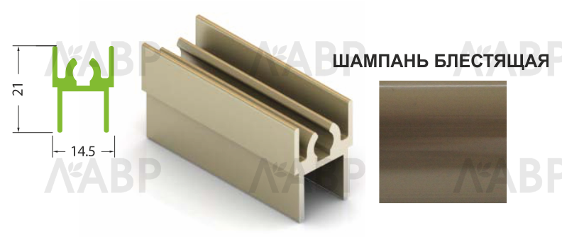 Рамка верхняя шампань блестящая 5,4м для шкафов купе Aristo