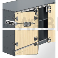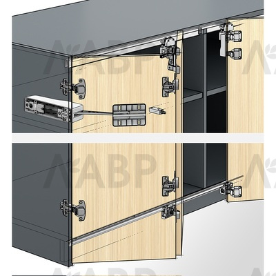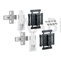 Комплект содержит 2 средние петли с точной регулировкой по высоте и регулировкой фуги для складных дверей с 2 створками, крепеж и монтажный шаблон