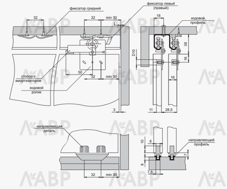 4 направляющих детали (по количеству роликов)