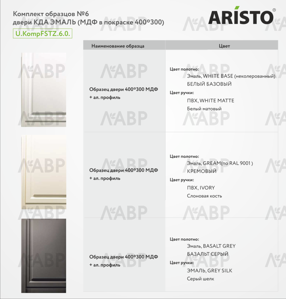 Комплект образцов №6 эмалей классической коллекции дверей Aristo